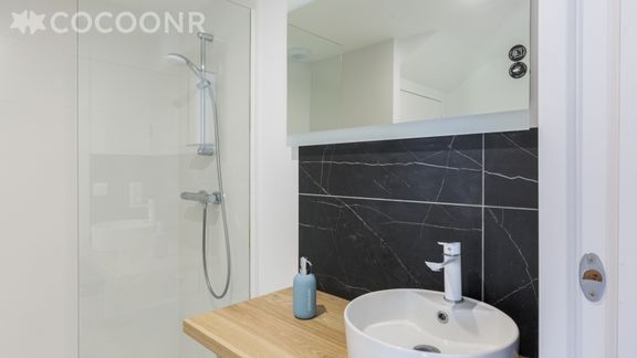 - Une salle d'eau avec une douche, une vasque et un WC.