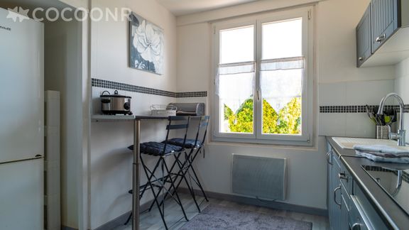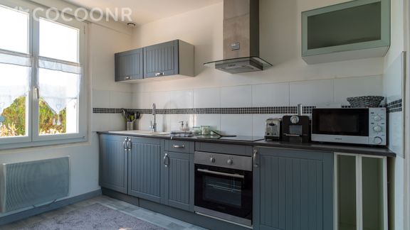 - Une cuisine équipée avec notamment : bouilloire électrique, four, four à micro-ondes, grille-pain, plaques de cuisson...