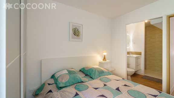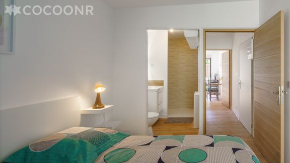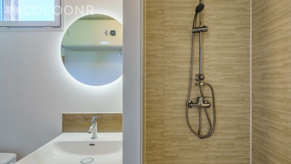 - Une chambre avec un lit queen-size (160×200), une salle d'eau attenante avec douche et WC