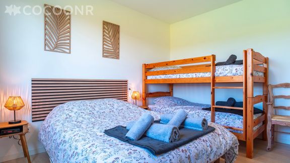 - Chambre 3 : un lit double (140x190) et un lit superposé