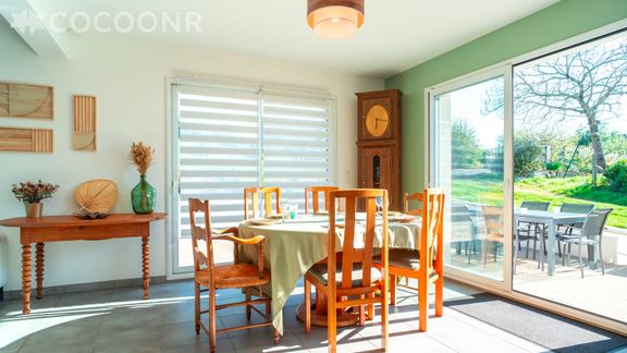 L'agence Cocoonr/Book&Pay vous propose à la location, à Plomodiern, cette charmante maison plain-pied d’une superficie de 116 m² et pouvant accueillir jusqu’à 8 voyageurs. Elle est composée d’une jolie pièce à vivre de 35 m², d'une cuisine ouverte équipée, de trois belles chambres, d'une salle de bain (avec douche et baignoire) et vous pourrez profiter d’un jardin d’environ 850 m². Wifi (fibre optique), draps et serviettes inclus, nous n’attendons plus que vous !