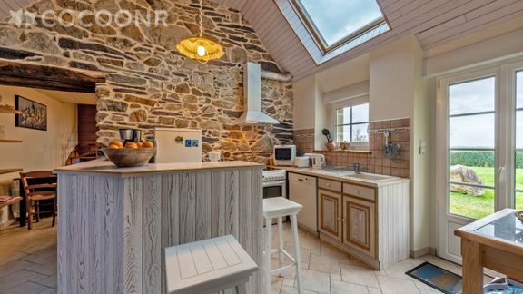 L'Agence Cocoonr/Book&Pay vous propose à la location, à Plomodiern, cette charmante maison, d’une superficie de 75 m² et pouvant accueillir jusqu’à 4 voyageurs. Elle est composée d’une jolie pièce à vivre de 27 m² (avec poêle à bois), d'une cuisine équipée, de deux belles chambres, d'une salle d'eau (avec douche) et vous pourrez profiter d’un jardin d’environ 1 000 m².