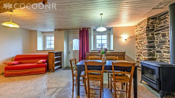 - Une pièce de vie de 27 m² avec canapé, TV, coin repas et poêle à bois (le bois est à la charge des voyageurs)