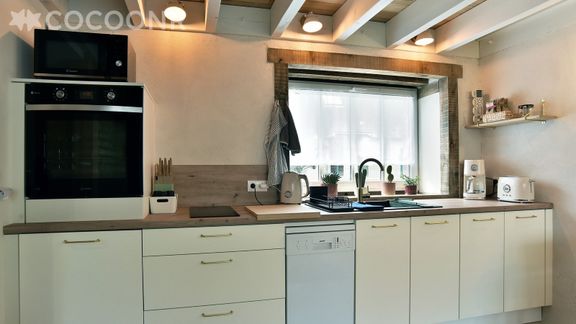 - Une cuisine équipée avec notamment : bouilloire électrique, four, four à micro-ondes, grille-pain, lave-vaisselle, plaques de cuisson...