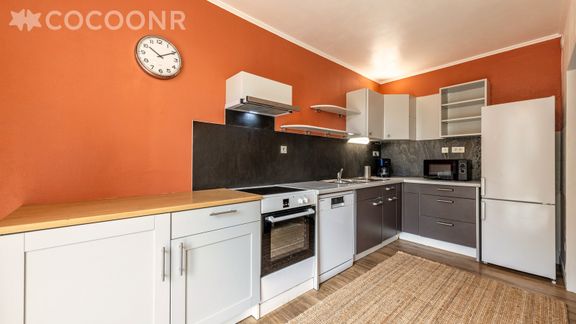 - Une cuisine équipée avec notamment : bouilloire électrique, four, four à micro-ondes, grille-pain, lave-vaisselle, plaques de cuisson...