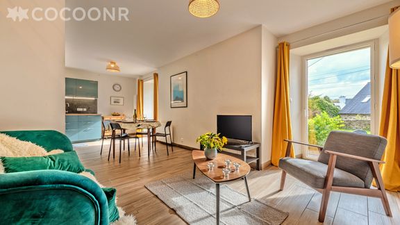L'Agence Cocoonr/Book&Pay vous propose, sur la commune de Plougastel-Daoulas, cette charmante maison d’une superficie de 58 m² et pouvant accueillir jusqu’à 4 voyageurs. Elle est composée d’une jolie pièce à vivre, d'une cuisine équipée, de deux belles chambres et d'une salle de bain Vous pourrez profiter d’un jardin d’environ 100 m²! Wifi, draps et serviettes inclus, nous n’attendons plus que vous !