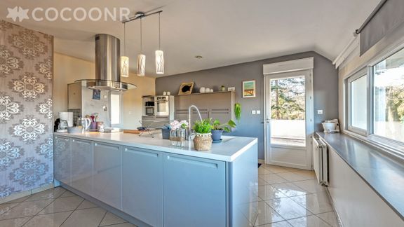 Nous vous proposons à la location, sur la commune de Plougastel-Daoulas, cette maison avec vue mer, d’une superficie de 180 m² et pouvant accueillir jusqu’à 8 voyageurs. Elle est composée d’une pièce à vivre de 88 m², cuisine équipée, de quatre chambres, deux salles de bain (avec douche et baignoire) et vous pourrez profiter d’un jardin d’environ 1 500 m².