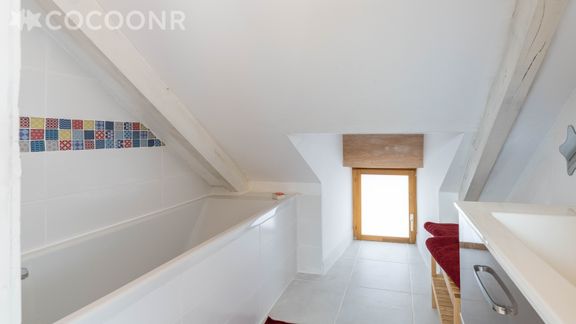 Pouvant accueillir confortablement 6 voyageurs, la maison se compose au rez-de-chaussée d'un salon séjour avec espace-repas, d'une cuisine ouverte et entièrement équipée, au premier étage une suite parentale avec salle de bain et dressing et au second étage deux belles chambres avec salle de bain.