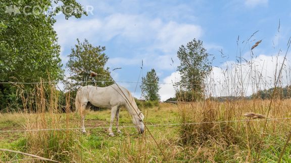 - A l'arrière de la maison, exposition nord, un parc pelouse de 2500 m² avec petite terrasse et fil à linge et un parc boisé de 5000 m²