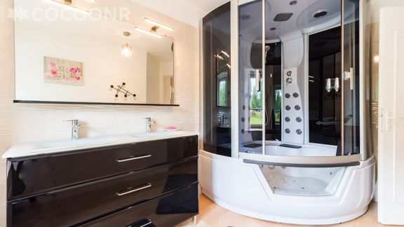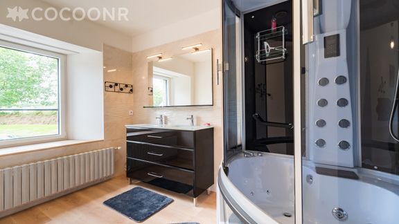 - Une salle de bain avec baignoire balnéo
