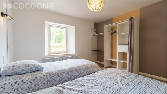 - Deux chambres composées de deux lits simples chacune (quatre couchages)