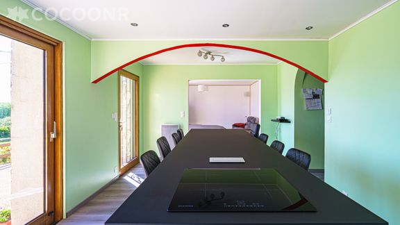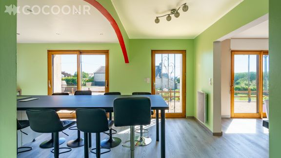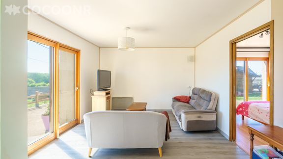 - Une pièce de vie de 40 m² avec canapés, TV, et coin repas