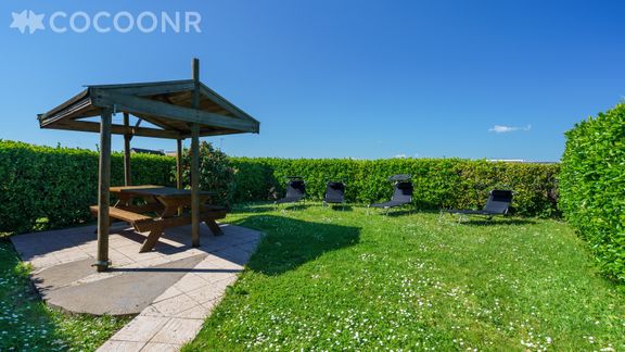 - Un beau jardin semi-clos de 800 m² avec mobilier