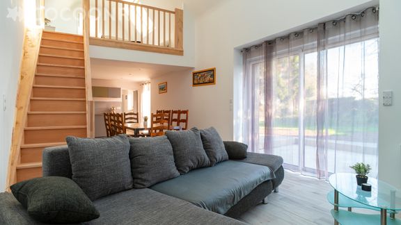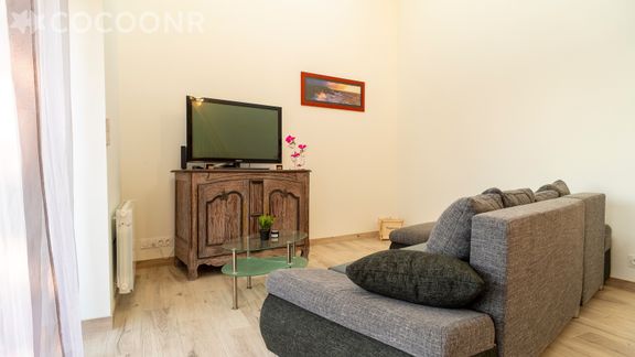 - Une pièce de vie de 40 m² avec TV, canapé-lit double et espace repas