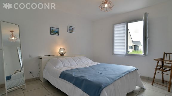 - Chambre 1: un lit queen-size (160×200) avec placard et penderie