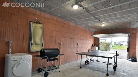 - Un garage avec lave-linge, sèche-linge et table de ping-pong