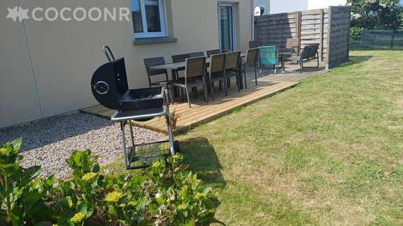 - Un beau jardin de 330 m², exposé Sud-Nord, clos et privé, équipé d'une table et chaises, barbecue, transats et fauteuils.