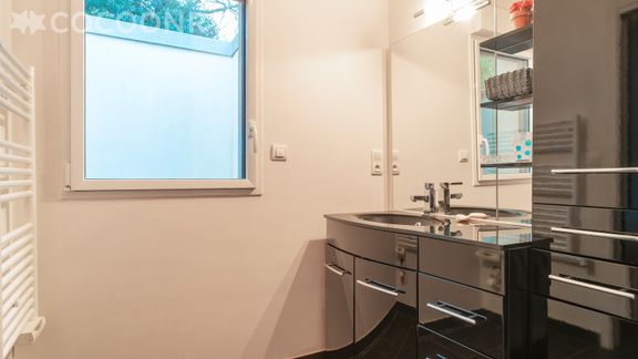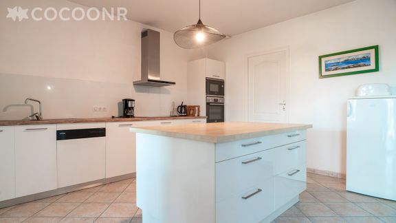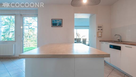 - Une cuisine équipée avec notamment : bouilloire électrique, four, four à micro-ondes, grille-pain, lave-vaisselle, plaques de cuisson... et espace salle à manger.