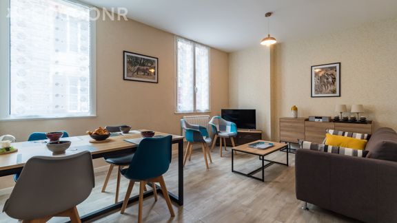 - Une pièce de vie de 28 m² avec canapé convertible, TV, Wifi inclus, table à manger