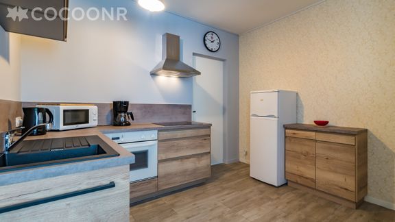 - Une cuisine équipée avec notamment : bouilloire électrique, four, four à micro-ondes, réfrigérateur combiné, grille-pain, plaques à induction...