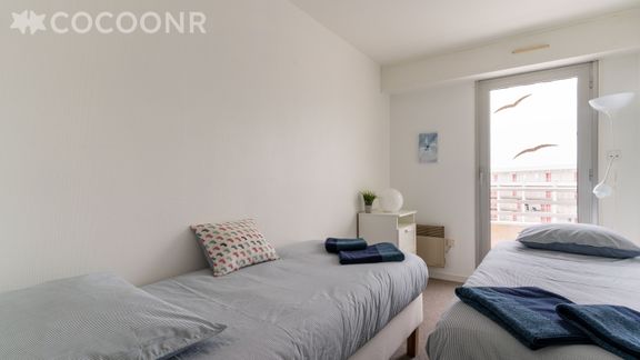 logement tres agreable, lumineux, bien équipé. Bon emplacement bord de mer et commerces. Le petit point faible : chambre etroite.