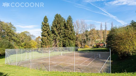 La maison est entourée d’un somptueux parc arboré de 9 000 m², idéal pour la détente et les promenades.