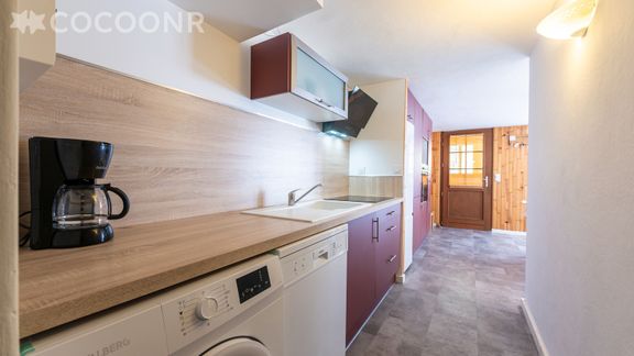 - Une cuisine équipée avec notamment : four, four à micro-ondes, grille-pain, bouilloire, lave-vaisselle, plaques de cuisson, appareil à raclette, appareil à fondue, plancha...