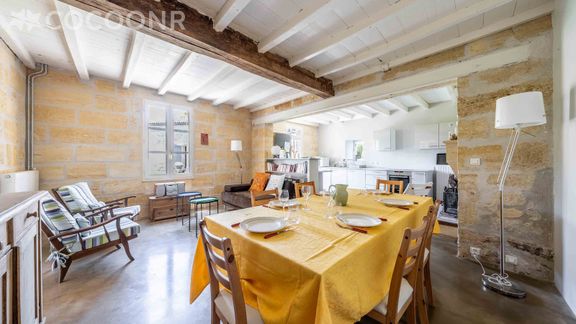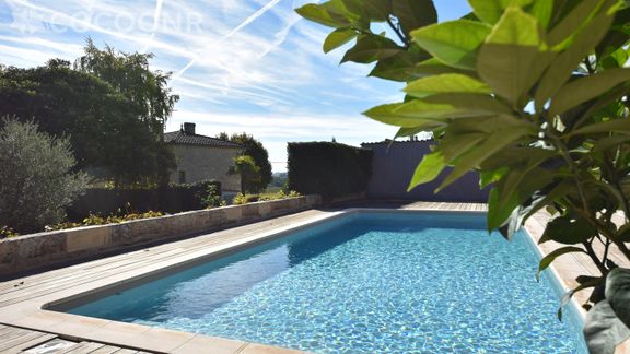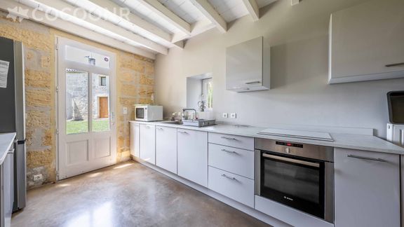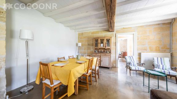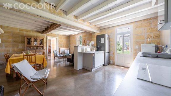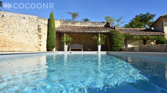 L'agence Cocoonr/Book&Pay vous propose à la location, à Puisseguin, ce charmant domaine avec piscine, d’une superficie de 190 m² et pouvant accueillir jusqu’à 9 voyageurs. Il est composé de pièces à vivre, d'une cuisine et une kitchenette équipée, de quatre chambres, deux salles d'eau (avec douche) et vous pourrez profiter d’un jardin d’environ 1 500 m².