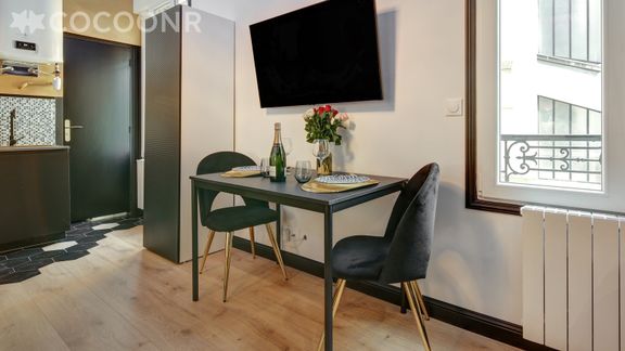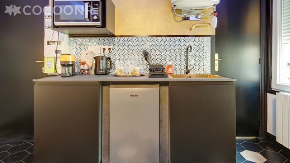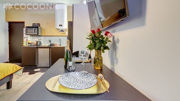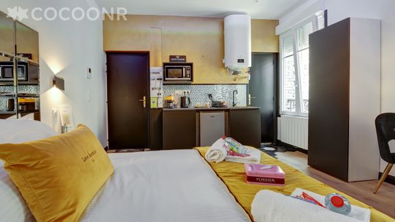 L'Agence Cocoonr/Book&Pay vous propose, à Reims, ce charmant studio d’une superficie de 29 m² et pouvant accueillir jusqu’à 2 voyageurs. Situé au 1er étage (sans ascenseur), il se compose d’une jolie pièce à vivre de 27 m², d'une cuisine ouverte équipée, d'une salle de bain (avec douche et baignoire). Wifi (fibre optique), draps et serviettes inclus, nous n’attendons plus que vous !