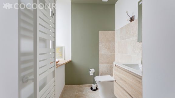 - Une salle d'eau (avec douche, WC, vasque et miroir lumineux)