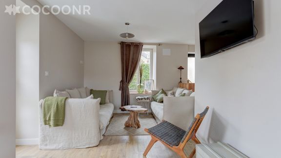 - Une pièce de vie de 42 m² avec TV, canapés et espace repas