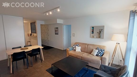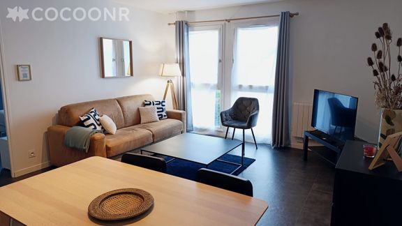 Nous vous proposons à la location, à Rennes, dans le quartier de La Courrouze, cet appartement de 2 chambres avec parking et wifi (fibre optique), d’une superficie de 60 m² et pouvant accueillir jusqu’à 5 voyageurs.