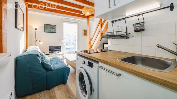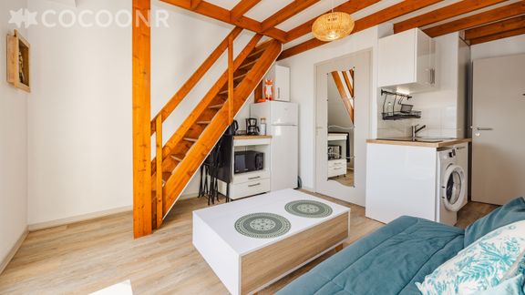L'agence Cocoonr/Book&Pay vous propose à la location, à Rennes, ce charmant appartement en duplex d’une superficie de 26 m² et pouvant accueillir jusqu’à 2 voyageurs. Situé au 3e étage (sans ascenseur), il se compose d’une pièce à vivre, d'une kitchenette équipée, d’un espace nuit, d'une salle d'eau (avec douche). Wifi (fibre optique), draps et serviettes inclus, nous n’attendons plus que vous !