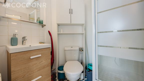 - Une salle d'eau avec douche, WC