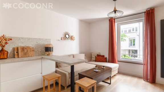 L'agence Cocoonr vous propose à la location, à Rennes, ce charmant appartement avec wifi (fibre optique), d’une superficie de 30 m² et pouvant accueillir jusqu’à 3 voyageurs. Situé au rez-de-chaussée, il se compose d’une jolie pièce à vivre de 16 m², cuisine équipée, d’une belle chambre, une salle de bain (avec douche et baignoire). Le ménage est inclus dans la location et du linge de qualité hôtelière 4* vous est fourni (draps, serviettes de toilette, torchons), votre lit sera préparé à votre arrivée.