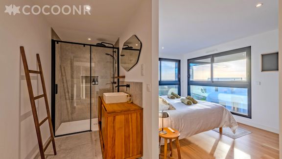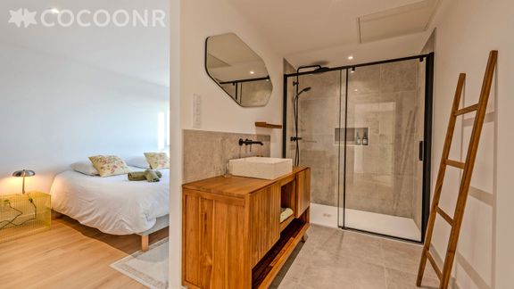 - Chambres 1, 2 & 3 : avec chacune un lit king-size (180×200) et leur salle d'eau attenante (avec douche)