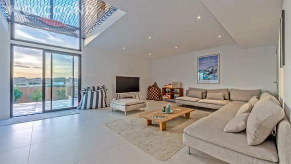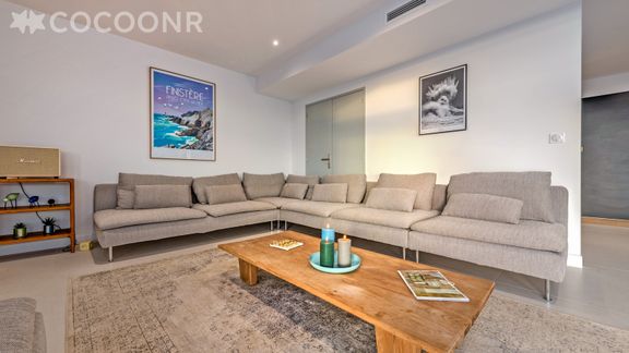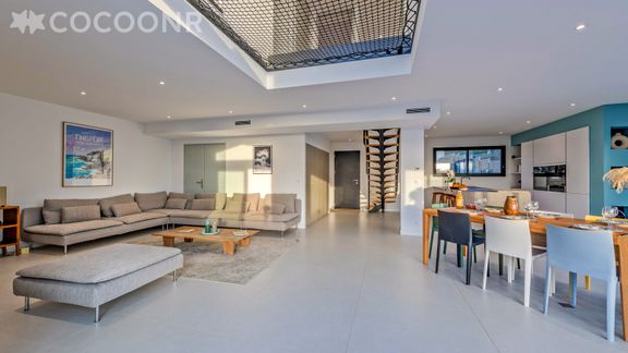 - Une pièce de vie lumineuse de 60 m² avec TV, canapés, salle à manger (accès direct à la terrasse)