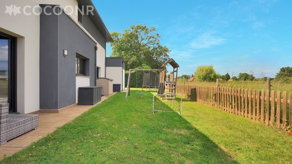- Le jardin est clos et sans vis-à-vis. Côté pâtures, une petite barrière a été installée pour permettre de profiter des chevaux qui viennent régulièrement.