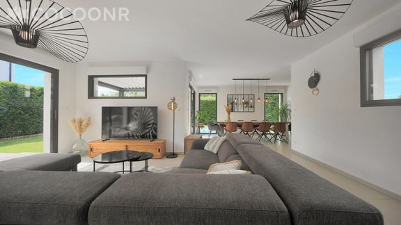 - Un beau jardin de 300 m² + terrasse de 90 m² environ avec plusieurs espaces pour profiter des beaux jours : espace repas avec table conviviale et barbecue, espace détente avec salon de jardin, transats, piscine, jacuzzi.