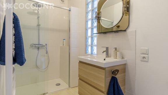 - Chambre 1 : avec un lit king-size (180×200) et sa salle d'eau avec douche