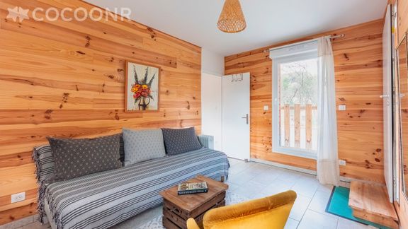 - Une pièce de vie de 20 m², canapé / lit simple et espace repas