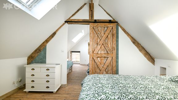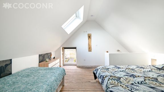 - Une chambre dans la continuité de l'espace nuit (séparée par une porte coulissante) : Un lit king-size (180x200)