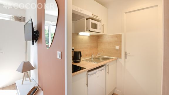 - Une cuisine équipée avec notamment : bouilloire électrique, four à micro-ondes, grille-pain, plaques de cuisson...