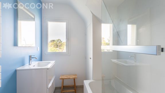 - Chambre 1 (suite parentale) : un lit queen-size (160) et une salle de bain attenante avec baignoire.