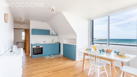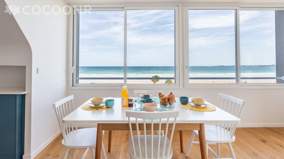 Nous vous proposons à la location, sur la commune de Saint-Cast-le-Guildo, ce grand appartement entièrement rénové en 2022 dans une villa de bord de mer, classé 3 étoiles, le long de la grande plage. D’une superficie de 75 m², il peut accueillir jusqu’à 5 voyageurs. Situé au 1er étage (sans ascenseur), il se compose d’un vaste séjour, d'une cuisine ouverte équipée, de trois belles chambres, deux salles de bain et vous pourrez profiter d’un jardin partagé d’environ 1 000 m². Wifi, draps et serviettes inclus, nous n’attendons plus que vous !