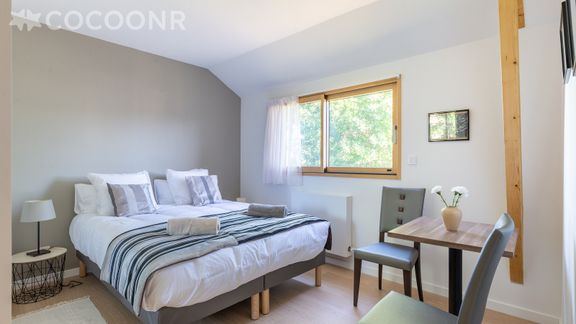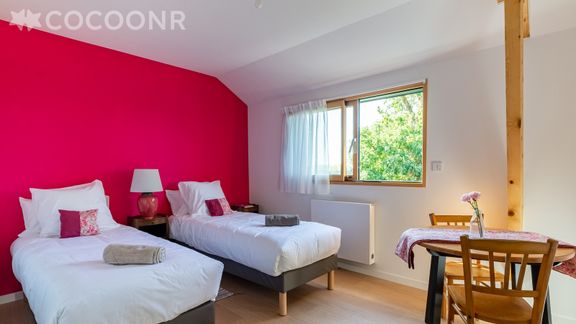 - Chambre 3 : deux lits simples. Tous les lits peuvent s'assembler en configuration queen-size (160x200) ou être séparés en lits simples (80x200) selon votre demande.