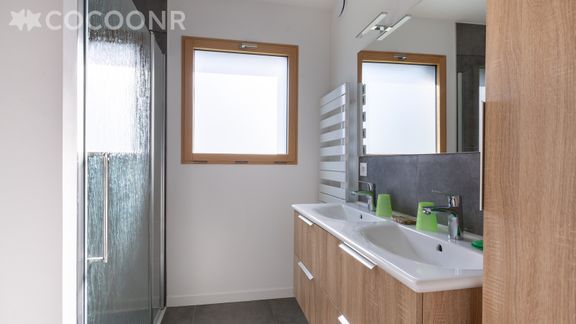 🙂 Maison neuve, lumineuse, très fonctionnelle avec une belle baie au rez-de-chaussée donnant sur la campagne. Les chambres sont grandes, voire spacieuse pour l'une; la literie est parfaite. Les deux salles de bain sont pratiques (une douche italienne en bas et une baignoire en haut) avec du rangement La décoration est sympa. Maison où l'on se sent bien d'emblée. La terrasse extérieure soit être très agréable à la belle saison.