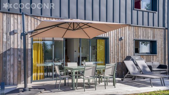 - Une terrasse de 35 m² avec mobilier de jardin, parasol, transats pour profiter des beaux jours et barbecue Weber au gaz avec plancha.