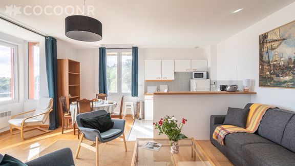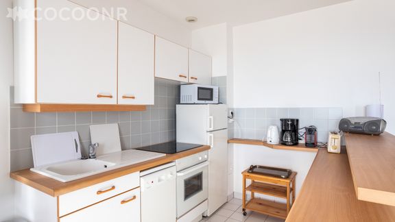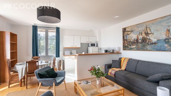 - Une belle pièce à vivre avec cuisine toute équipée et aménagée ouverte sur un salon séjour baigné de lumière avec ses fenêtres tournées vers la mer. Canapé convertible