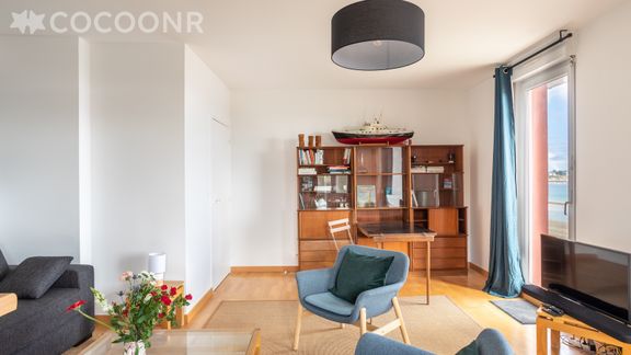 🙁 Vraiment pour pinailler, nous pensons qu'un appartement bénéficiant d'un tel point de vue mérite un mobilier un peu moins désuet. Le meuble principal et le meuble TV des années 60 ou 70 ne cadre pas avec l'ambiance maritime.